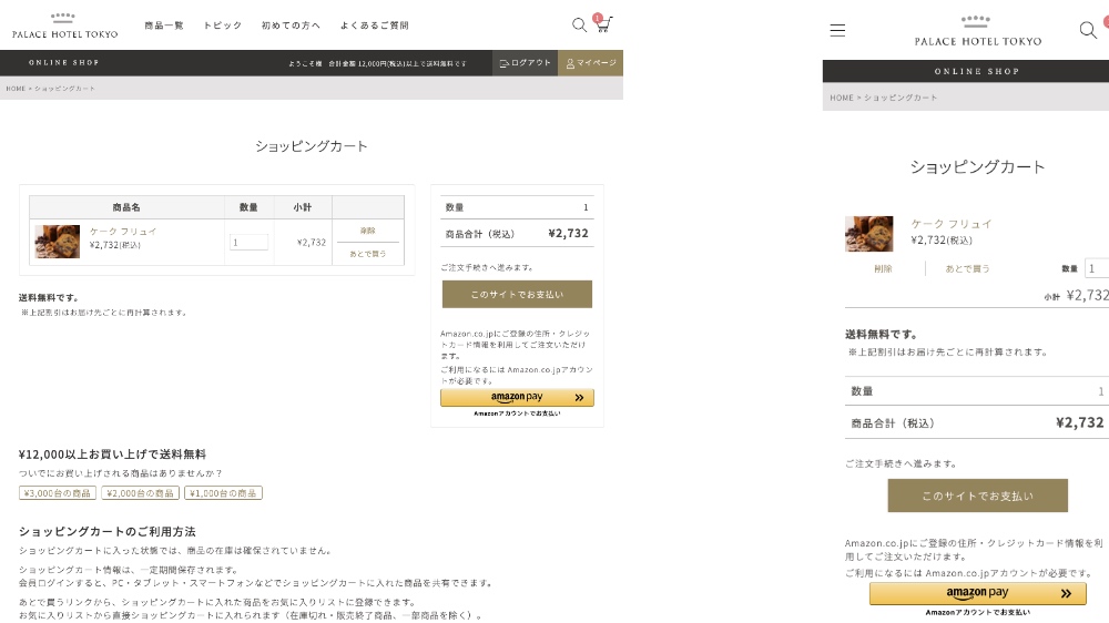 ページ上部の「ショッピングカート」ボタンをクリック(タップ)してショッピングカート画面に移動します。